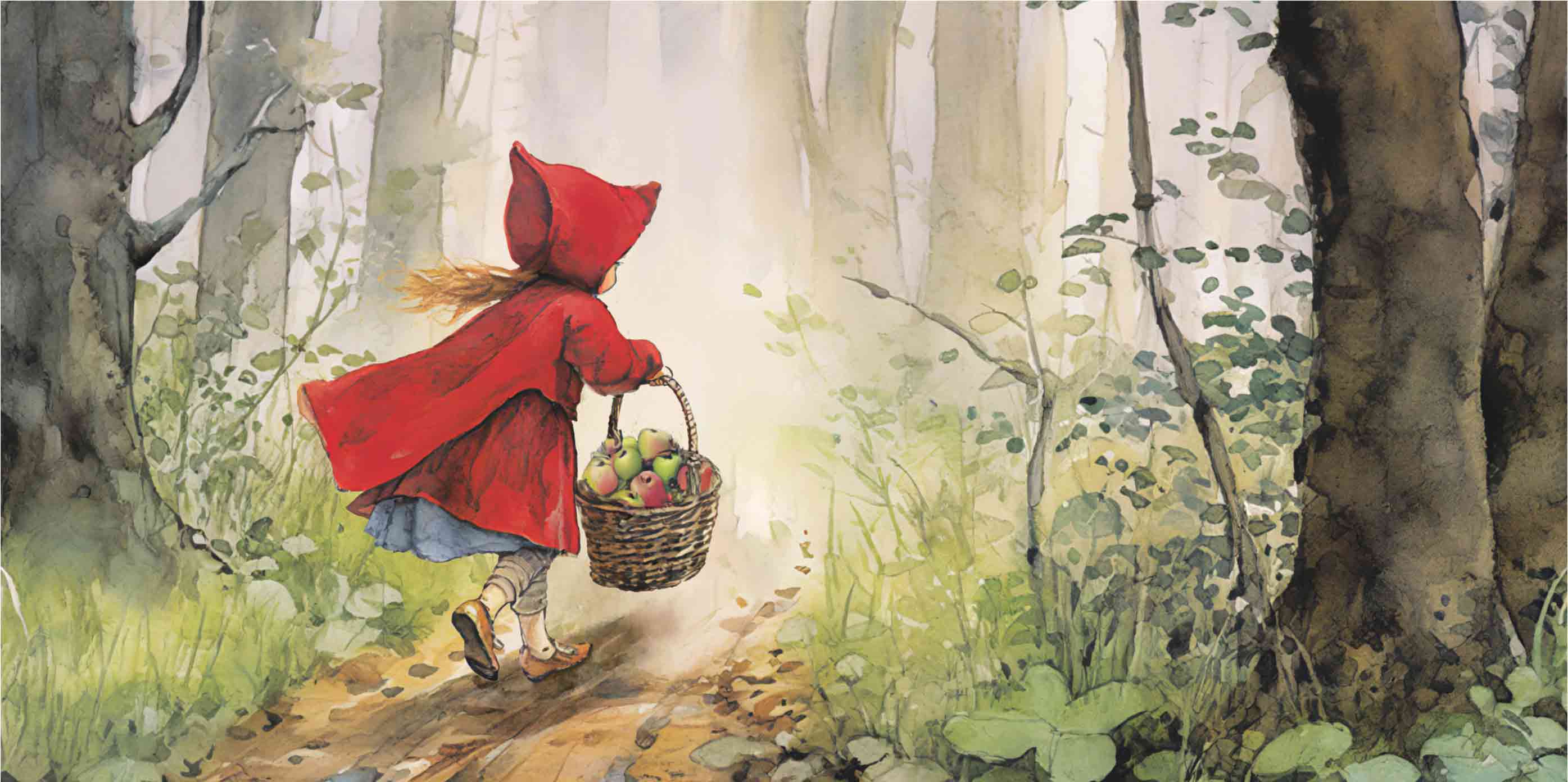 一天,小红帽的妈妈交给她一个任务,要她带着一篮食物和药品,去探望住在森林里正在生病的奶奶。