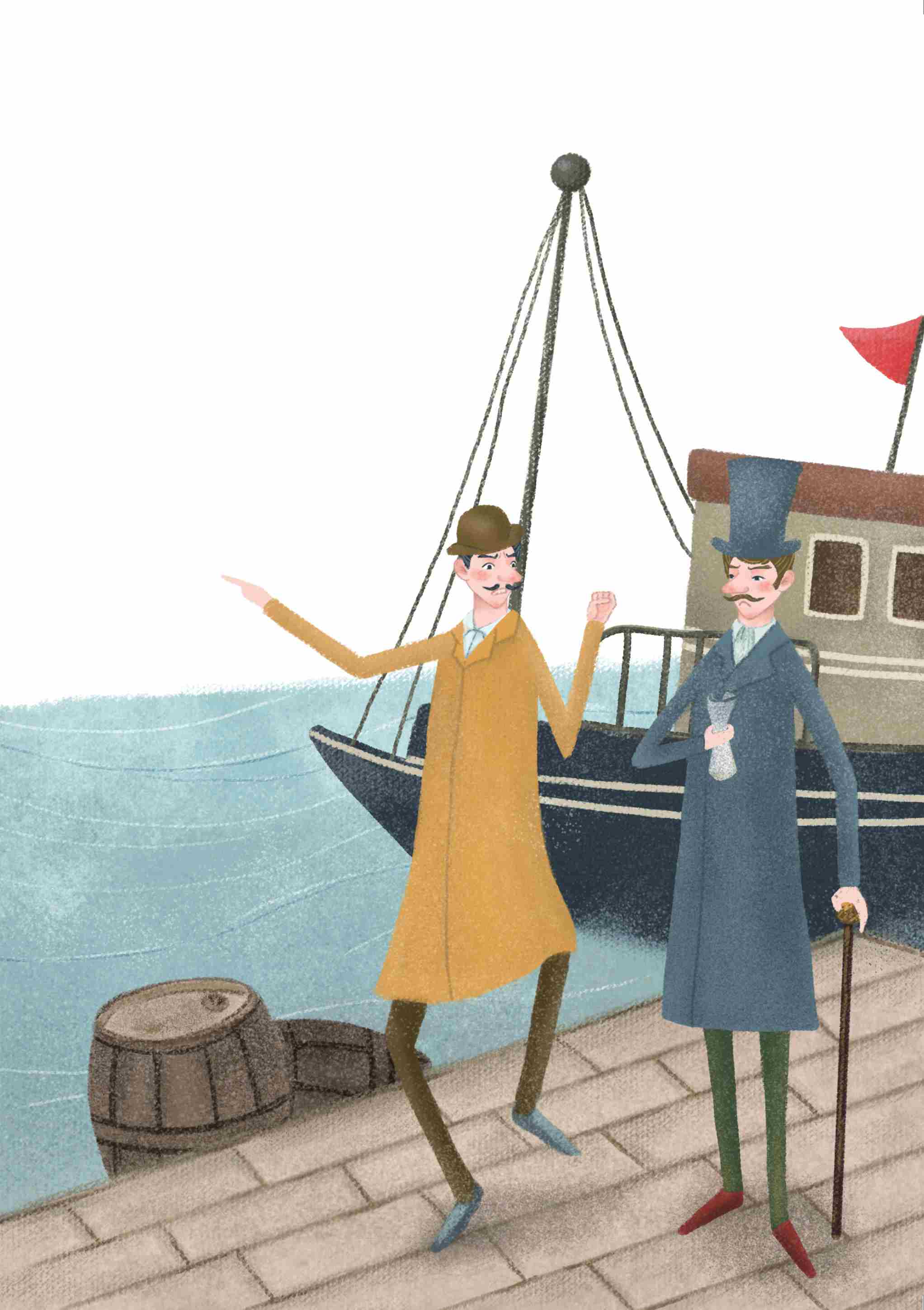有两个人在码头上散步,一个是英国驻苏伊士的领事,一个是菲克斯警探。菲克斯正是英国银行失窃案后被派到各个港口进行调查的警探之一。