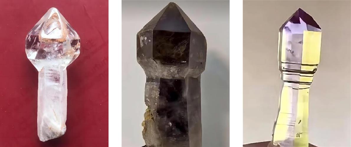 即具有两个锥顶的六方柱菱面体水晶,也称“双头水晶”,如图1-2-1(b)。