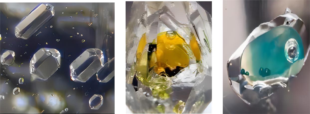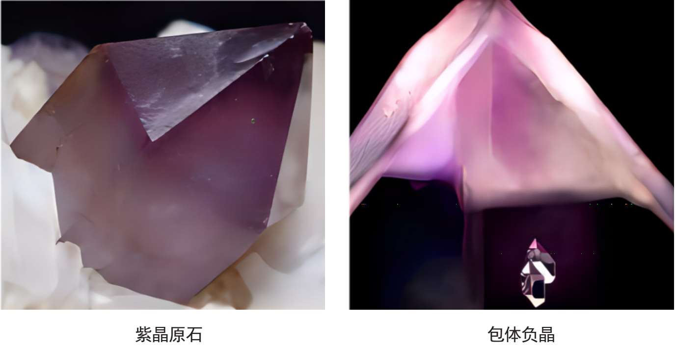 可将水晶分为固态包裹体水晶、流体包裹体水晶和固体、流体包裹体水晶。