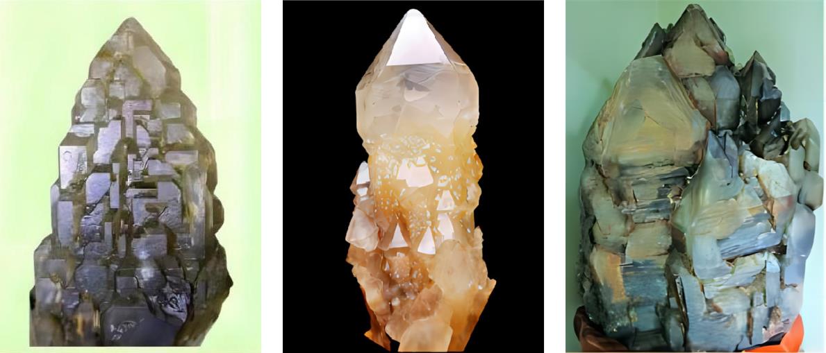 亦称“教堂水晶”或“城堡水晶”。它的大部分晶体都是与主晶体平行生长的平行连生水晶。由于其晶体形态酷似教堂或城堡的外形而得名,如图1-2-26。