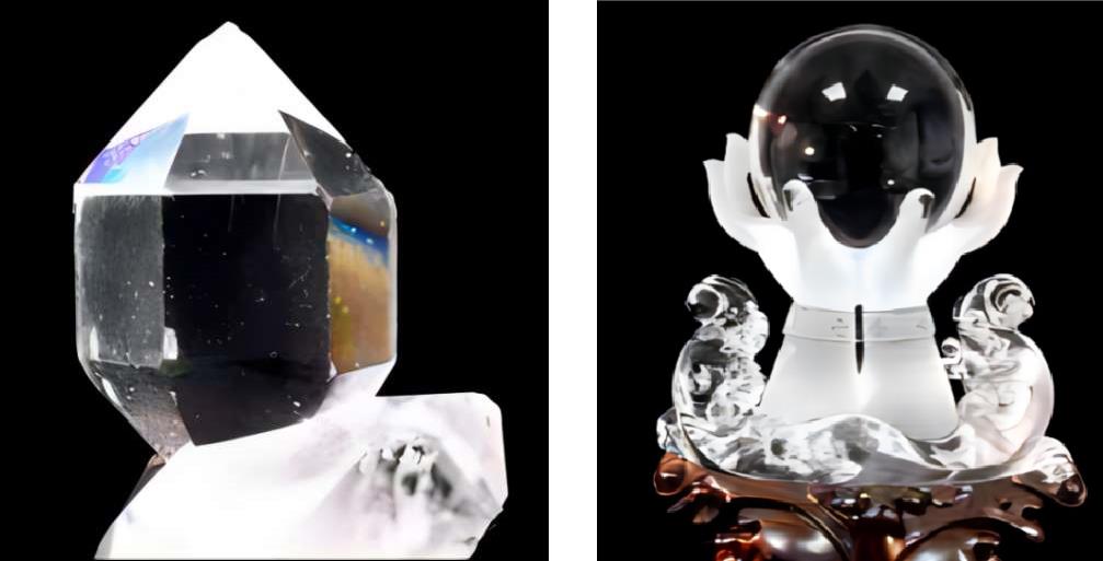 在此要指出的是,有人把熔炼水晶与石英玻璃混为一谈,认为熔炼水晶就是石英玻璃。把明明是石英玻璃球称为“熔炼水晶球”,如图1-224,其结果很容易误导消费者,造成市场混乱。显然,这是错误的做法。