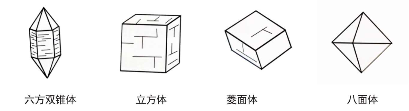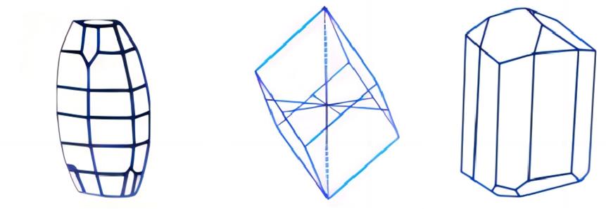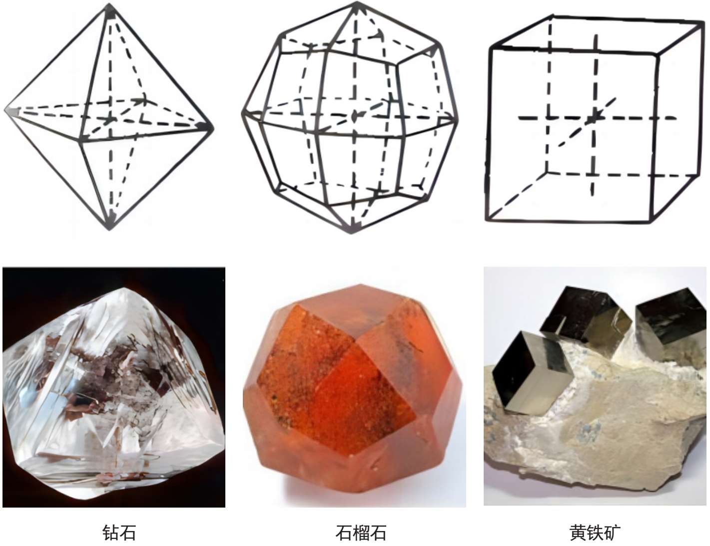 虽然晶体都是对称的,但是由于晶体的格子构造不同,晶体的外部几何形态亦有不同,如图2-5-2。