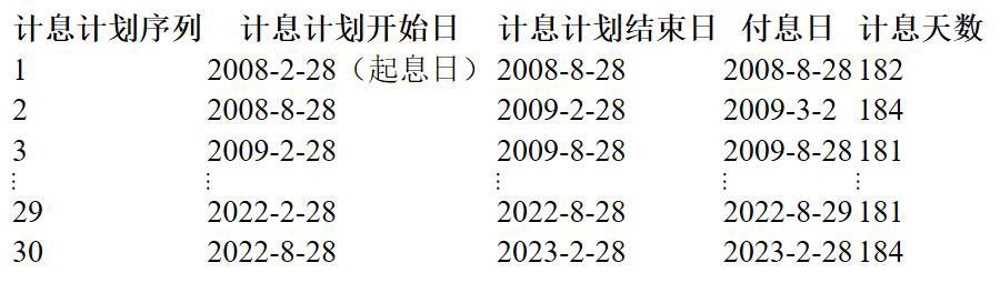 表2-2 08国债02债券的计息与付息时间