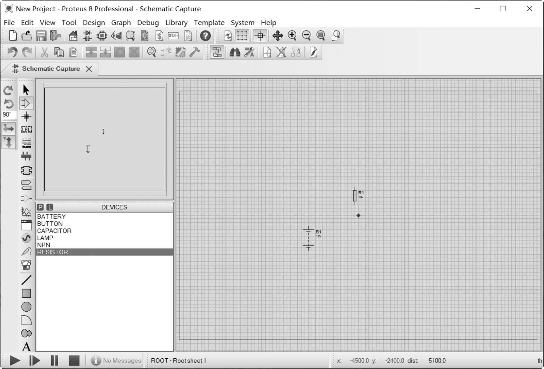 将添加到对象选择器中的元器件放置到PROTEUS ISIS编辑窗口。