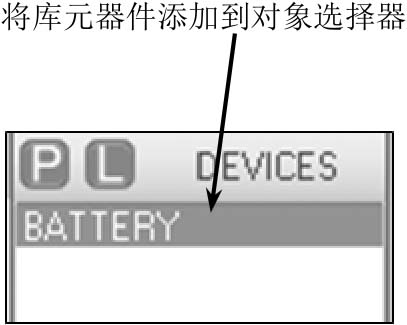 在结果列表的所需的元器件“BATTERY”上双击,元器件将出现在对象选择器中,如图2-15所示。