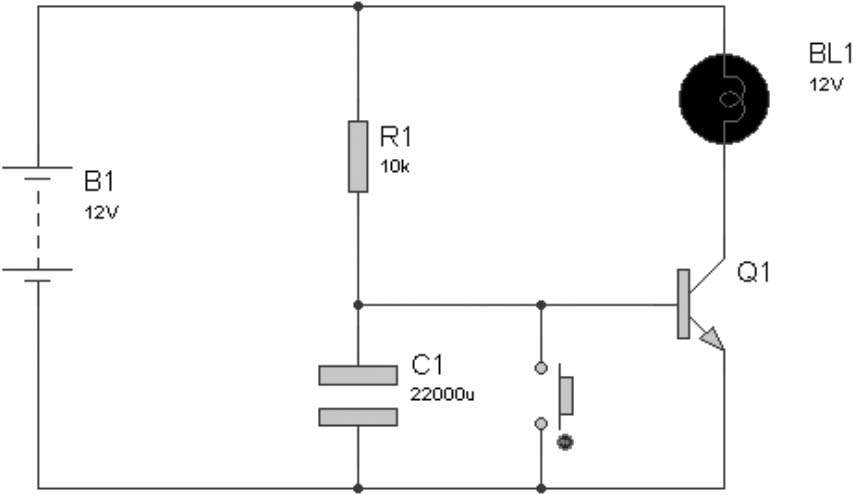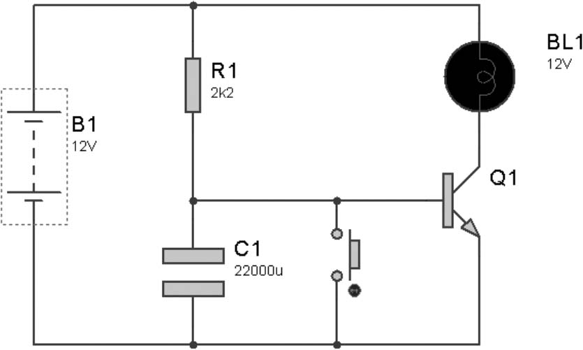 按照上述步骤,分别编辑BATTERY的电压值为12V;C1的电容值为22 000μF;R1的电阻值(0hms)为2k2Ω。编辑后的原理图如图2-43所示。