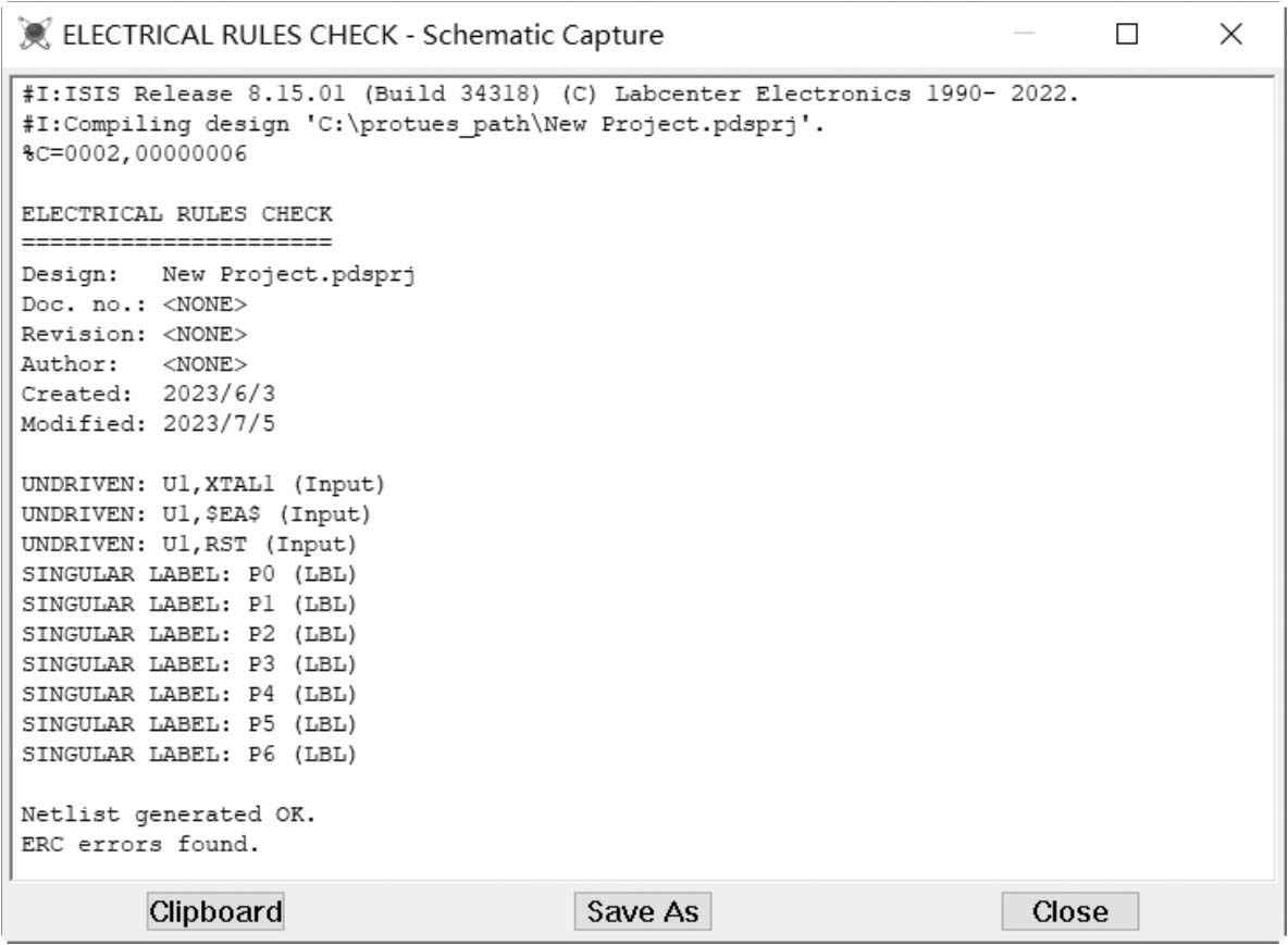 在这一电气规则检测报告单中,系统提示用户网络表已生成,并且无电气错误,即用户可以执行下一步操作。