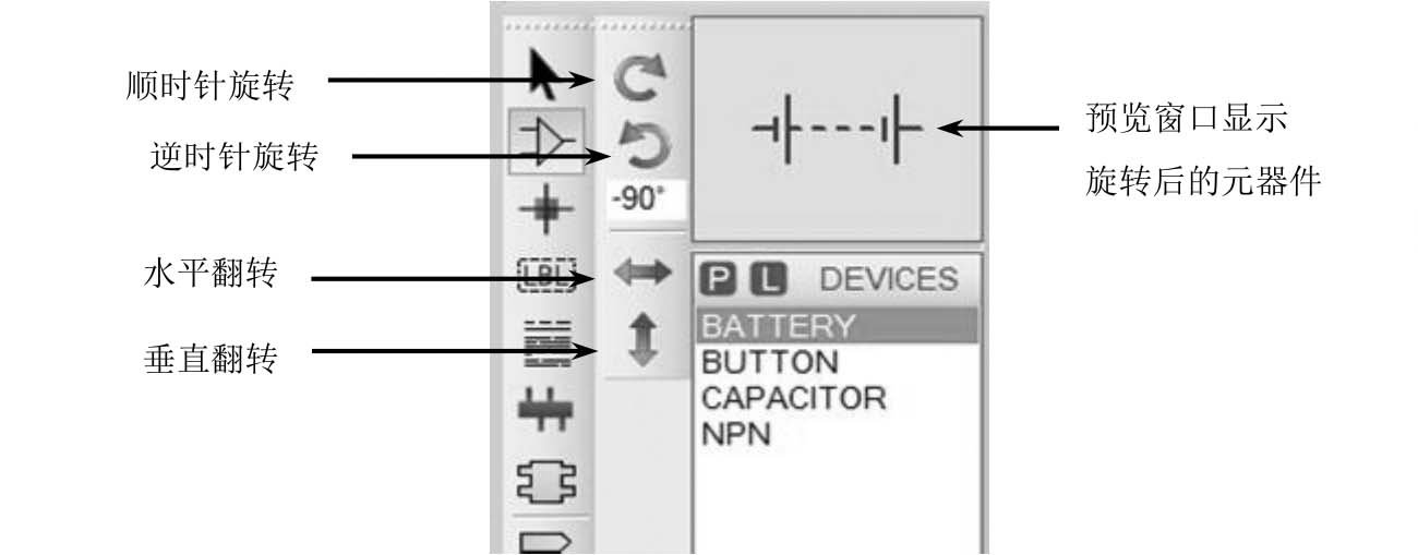 图2-26所示的预览窗口中显示的元器件为执行顺时针旋转后的方向。