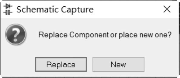 若要用另一元器件代替已放置好的元器件,则可以将另一元器件拖动到该元器件上,且保证有一个引脚正好重叠,此时单击将会出现如图2-32所示的界面,单击“Replace”按钮即可完成替换。