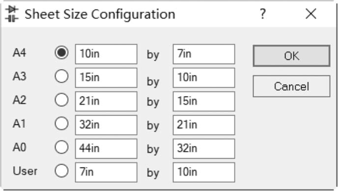 (1) 图纸大小设置: 单击“System”→“Set Sheet Sizes”,在出现的对话框中选中 A4的单选框,单击“OK”按钮确认,即可完成图纸大小的设置,如图2-4所示。
