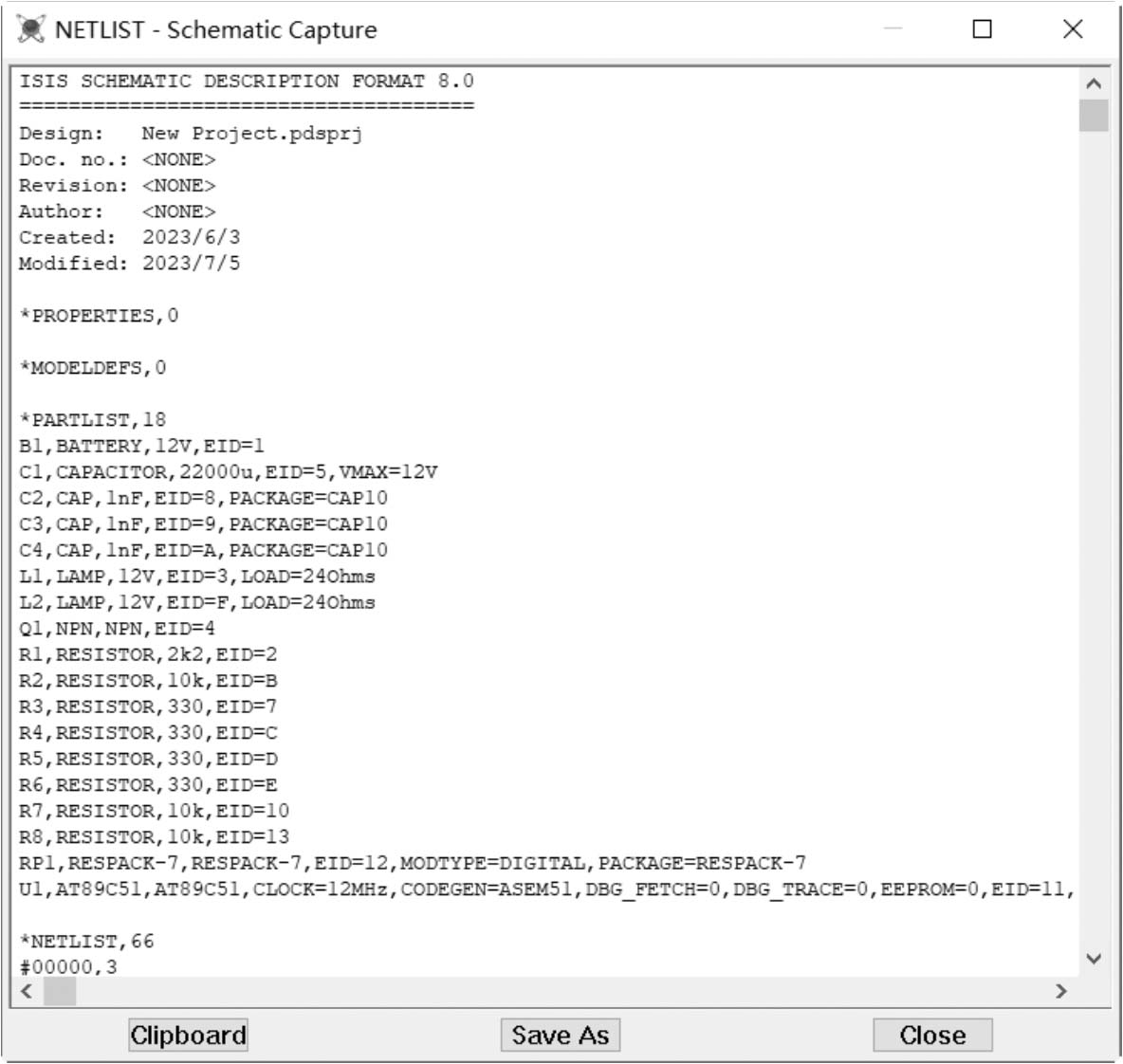 在这一对话框中,可设置网络表的输出形式、模式、范围、深度及格式。这里按其默认设置输出网络表。输出的网络表如图2-53所示。
