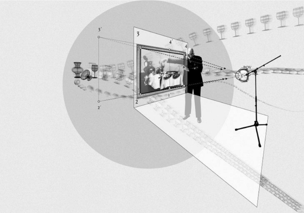 观众不仅必须与他们所看的东西保持一定的距离,而且他们所看到的东西必须被安排、准备、对齐,以便被完美地呈现出来。在二者之间,绘画的平面占据了主客之间的中间部分。历史学家已经对这种