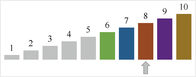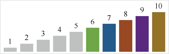 对于有序数组,可以采用更高效的二分查找策略。假设要在图1-10所示的数组中查找数字6。