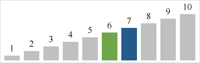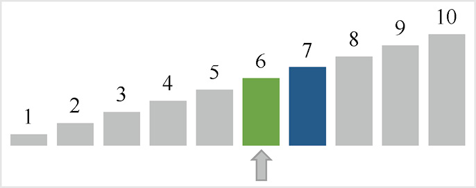 由于6大于5,因此5及其左边的数字均不需要再考虑,可以将查找范围缩减一半,如图1-12所示。