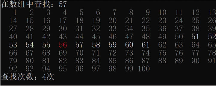 40 // 根据查找状态设定颜色,未查找的数字显示为白色(7),已查找过的数字