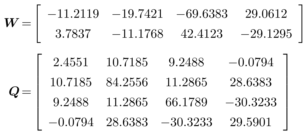 (1)求矩阵不等式(3-30),得到( W , Q )∈M为