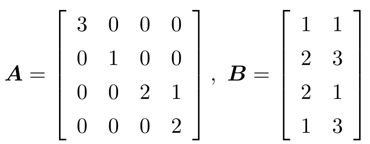 A 有不稳定特征值3、1、2、2,且( A , B )是可控的。