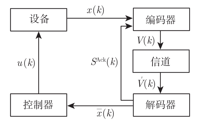 (1)编码器: k 时刻的编码器是一个从( x ( k ), S Ack ( k -1))到 V ( k )∈ Σ 的映射 E k ,即