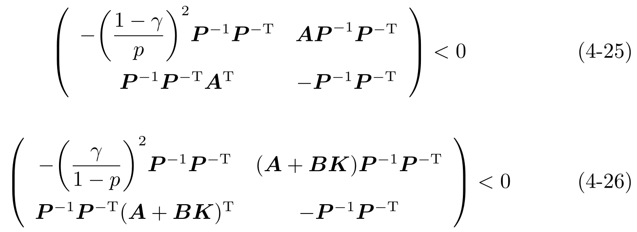 利用 K = W Q -1 和 Q = P -1 P -T ,式(4-23)和式(4-24)可分别写为