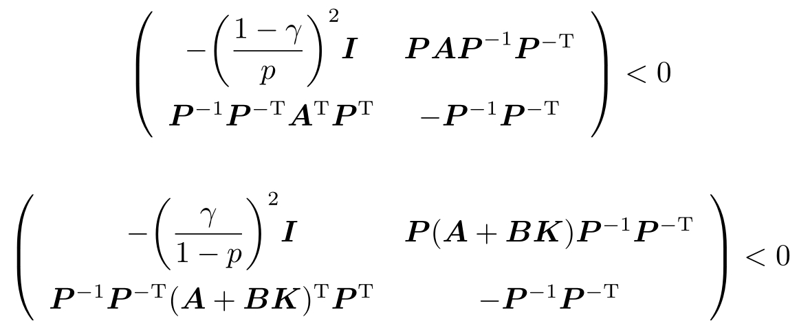 δ ( P ( A + BK ) P -1 )(1 -p )< γ