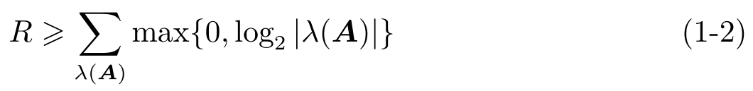 这个定理的重要性在于它揭示了码率与系统动态的关系,即如果系统有较快的动态( A 的特征值较大),则码率必须足够大以克服系统动态的影响。文献[11]同时证明在系统式(1-1)有加性白噪声条件下,定理1.1仍成立。