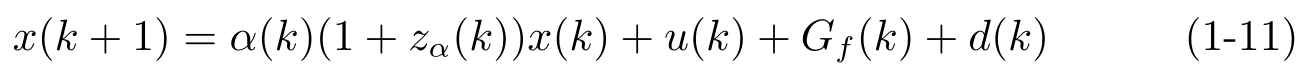 式中, z α ( k )代表 α ( k )的不确定性, G f ( k )代表反馈不确定环节的输出, d ( k )代表有界扰动。