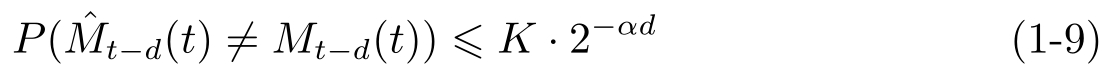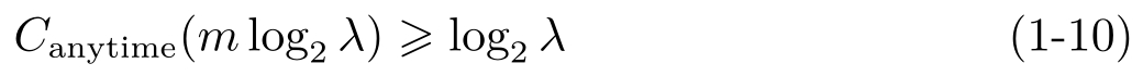 定义1.4 [52] 对于某一常数 K 、任意 d 和任意 t ,信道的 α 任意时间容量 C anytime ( α )是保证式(1-9)成立的信道码率的最小上界: