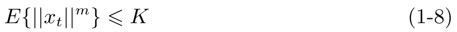 当系统的反馈回路包括噪声信道时(如图1-2所示),渐进稳定的定义必须做适当的修改,因为确定性系统的渐进稳定的定义不再适用于具有噪声信道的系统。我们介绍两种稳定性:几乎处处稳定和 m 阶矩稳定。
