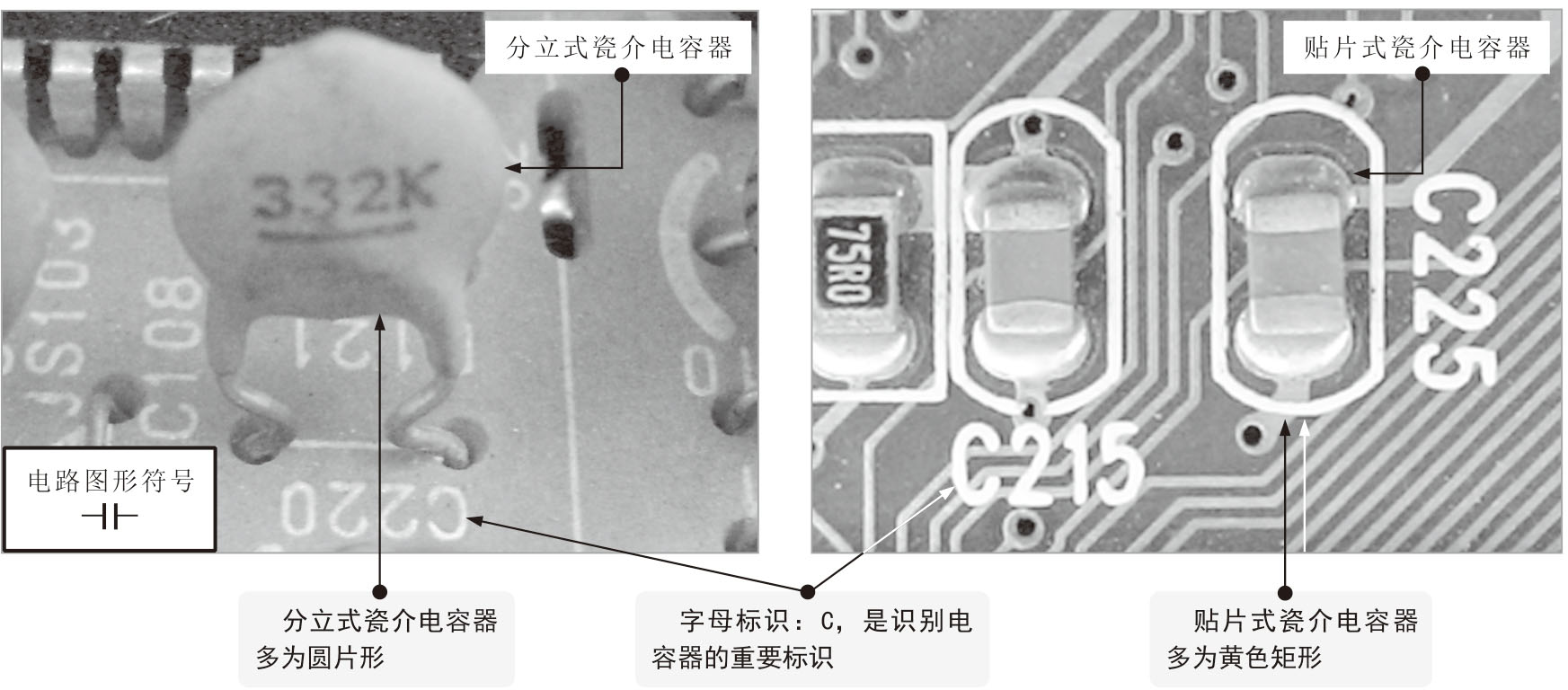 瓷介电容器用陶瓷材料作为介质,如图3-5所示,损耗较小,稳定性好,耐高温,耐高压,是应用最多的一种电容器。