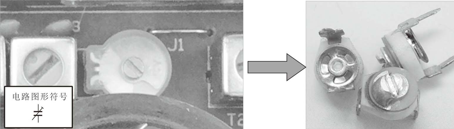 微调可变电容器又叫半可调电容器,电容量可调范围小,常见的有瓷介微调可变电容器、管形微调可变电容器(拉线微调可变电容器)、云母微调可变电容器、薄膜微调可变电容器等,电容量一般为5~45pF,主要用于收音机的调谐电路,如图3-13所示。