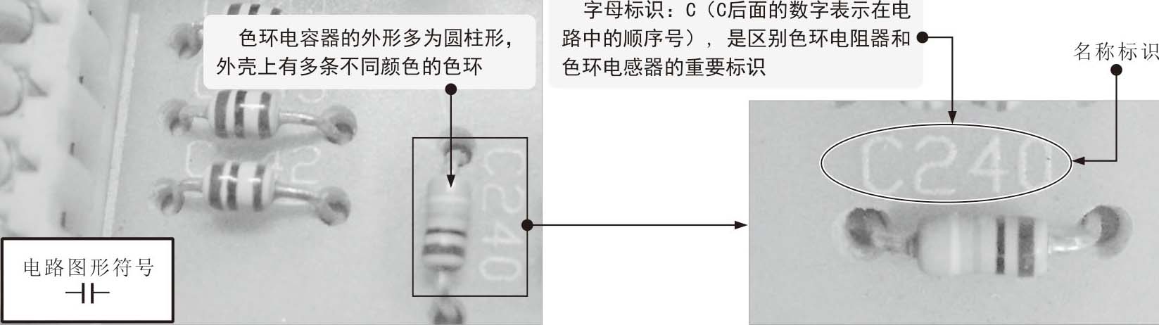 色环电容器是指在电容器的外壳上有多条不同颜色的色环,用来标注电容量,与色环电阻器十分相似,如图3-2所示。