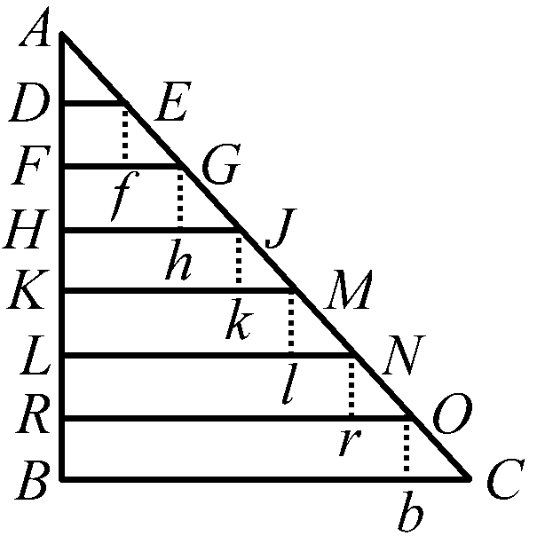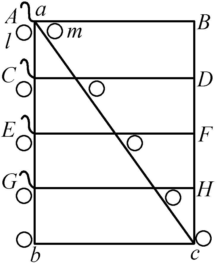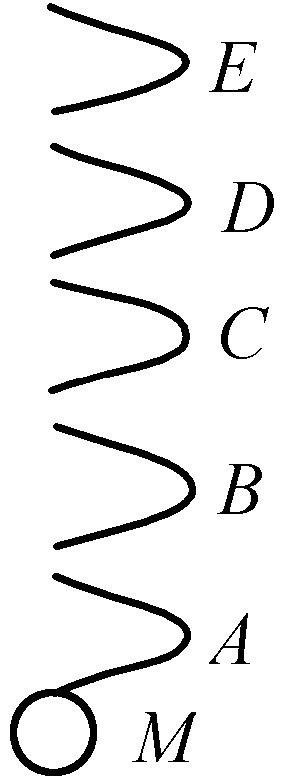 如果我们确定,这4段中的每一段单独开始伸展的速度是1,那么,由4段这样的弹簧组合而成的整根弹簧ad在自由伸展时的初始速度就是4;看起来好像可以由此得出,这根4段的弹簧施加给一个物体的初始速度比1段的弹簧造成的初始速度大4倍。然而,强度在4段的弹簧中是在1段的弹簧中的1/4;正是以某种尺度向一个不动的支点压迫这4段弹簧中的1段的力量,也成4倍多地压迫4段的弹簧,因为单个弹簧如果以这种方式与其他3段联在一起,它的支点就是可动的支点,从而4段的弹簧的坚硬度,或者换句话说也一样,4段的弹簧的强度,也就失去了传递它们速度的那种东西。因此就发生了这样的事情:4段的弹簧虽然在自由伸展时其初始速度要大于1段的弹簧4倍,但它给予一个物体的初始速度却并不大于该物体从1段的弹簧能够获得的初始速度。这一点可能有助于解释强度的概念,并说明,缘何在测算力的时候必须把强度考虑在内。