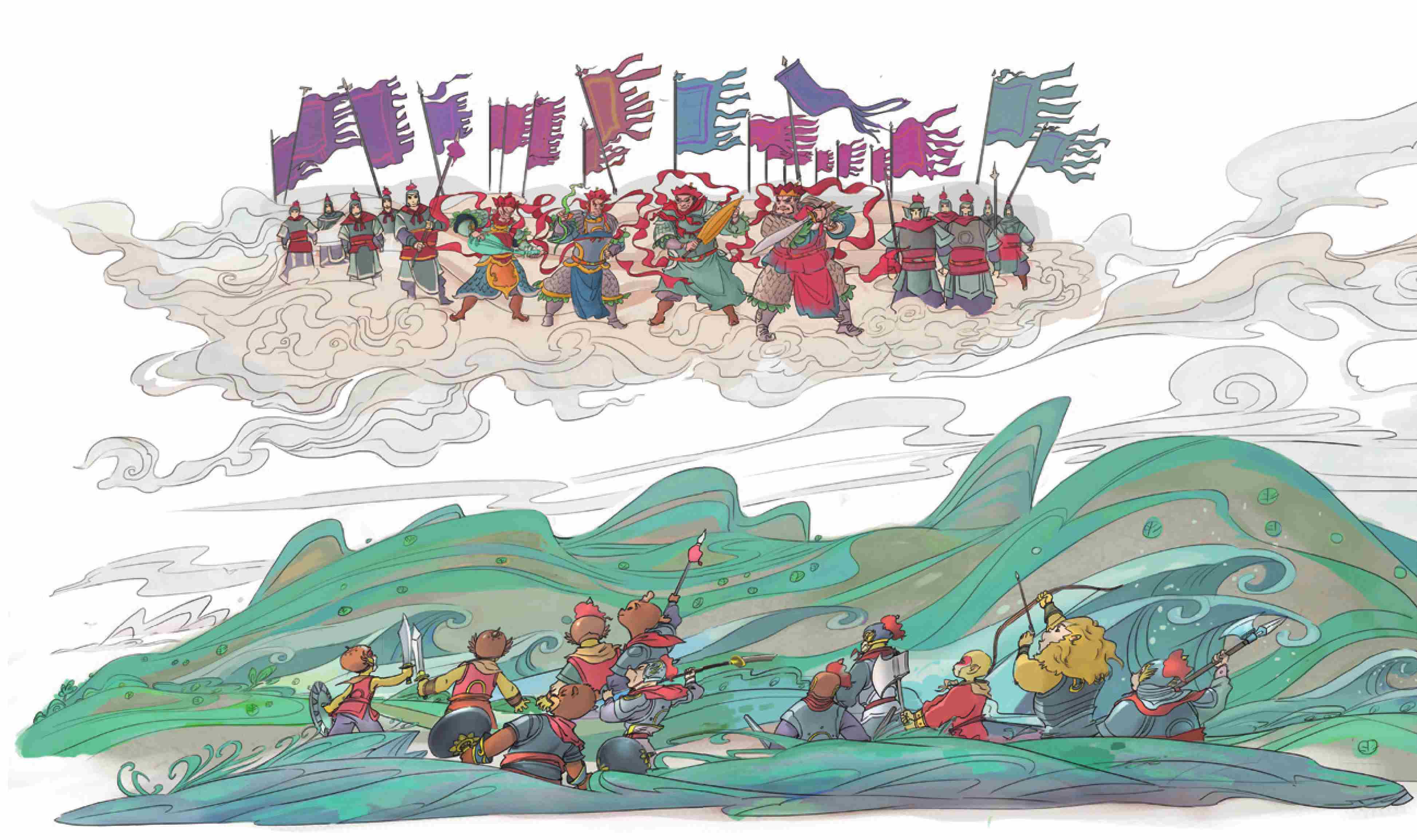 天兵杀到门口,喊道:“你这不知死活的弼马温!你犯了十恶不赦之罪,偷仙桃、窃仙丹、盗御酒,私跑下界,还不快跟我们上天领罪?!”悟空笑道:“这几样都是老孙干的没错!但要我跟你们走,就看你们有多大本事了。”说着率领七十二洞的虎豹豺狼、猴子猴孙一齐迎战。悟空拔下一把毫毛,嚼碎了一口喷出,喊声:“变!”就变成千百个大圣,打退了哪吒三太子,战败了四大天王。