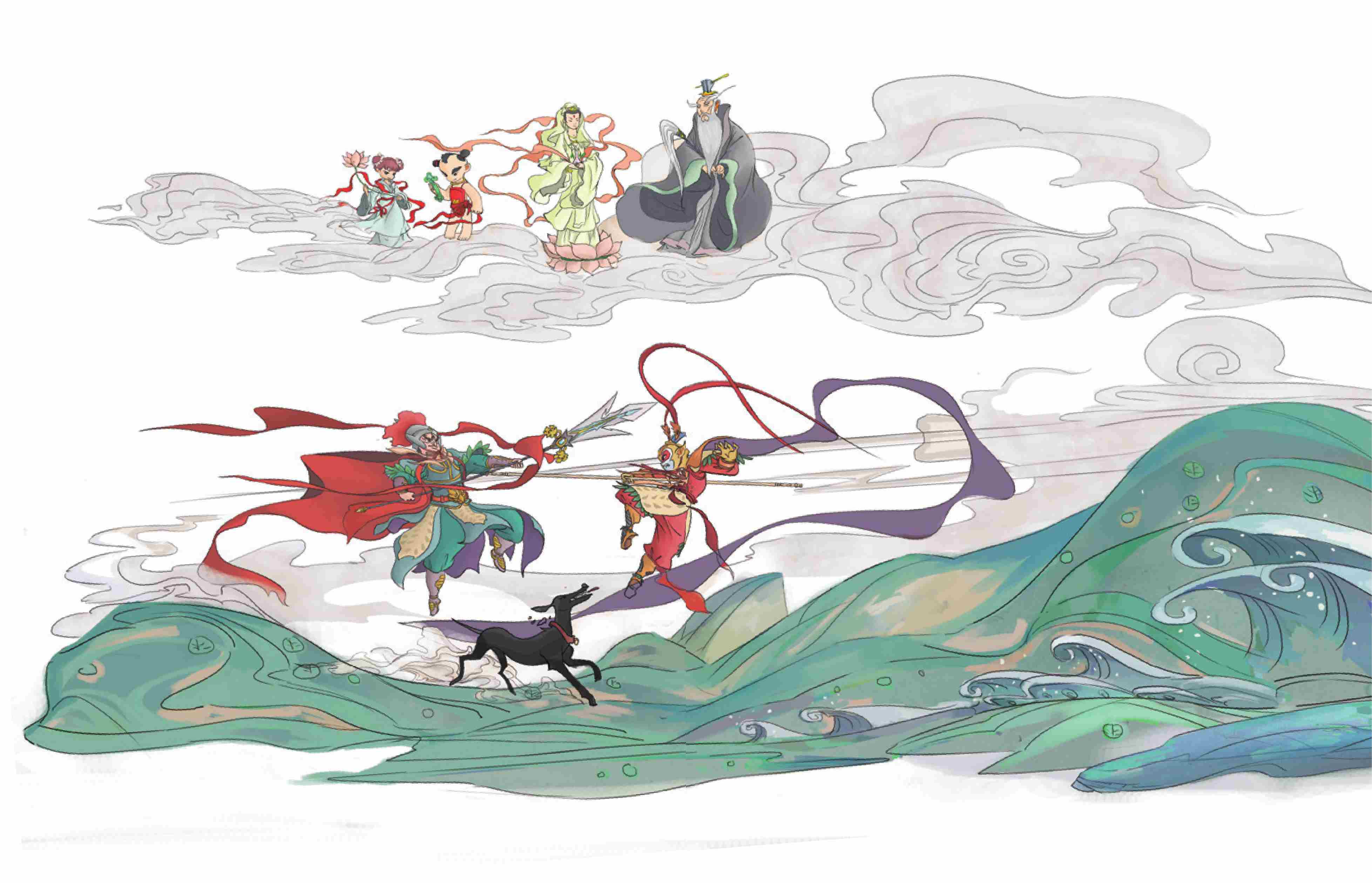 二郎小圣与齐天大圣展开恶战,势均力敌,斗了三百回合仍是不分胜负。二郎神使出法天象地的本领,变得身高万丈,悟空也变得巨大无比,像两座大山一样对峙。