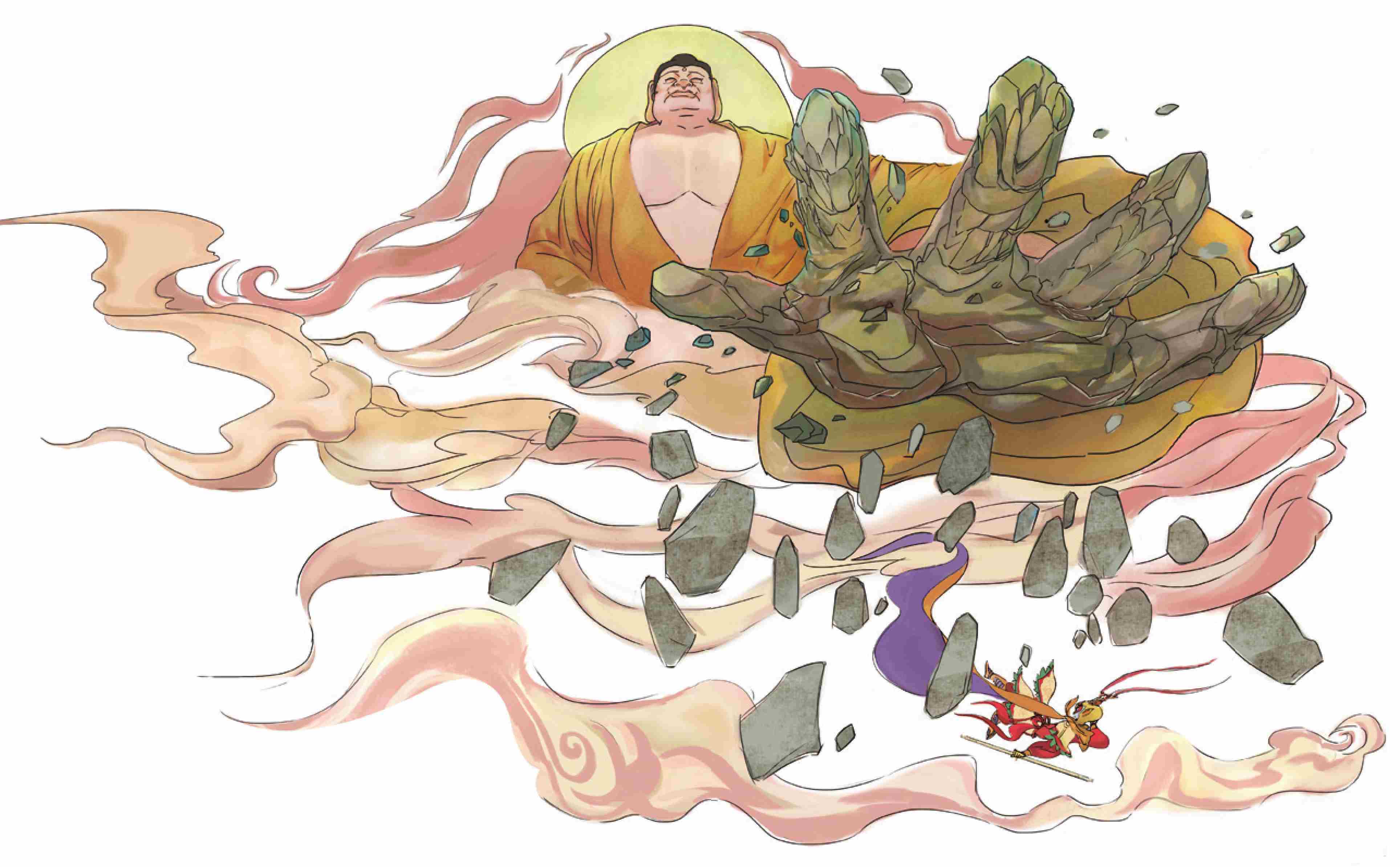 要细数《西游记》中最广为人知的桥段,一定会有“孙猴子跳不出如来佛祖的手心”这一节。小说中写到,玉帝对孙悟空无可奈何之际,便只好去请如来佛祖,显得如来的力量远比天界众仙要大,也显出佛教的威德比道教更强,这是原著要表达的宗教观点。