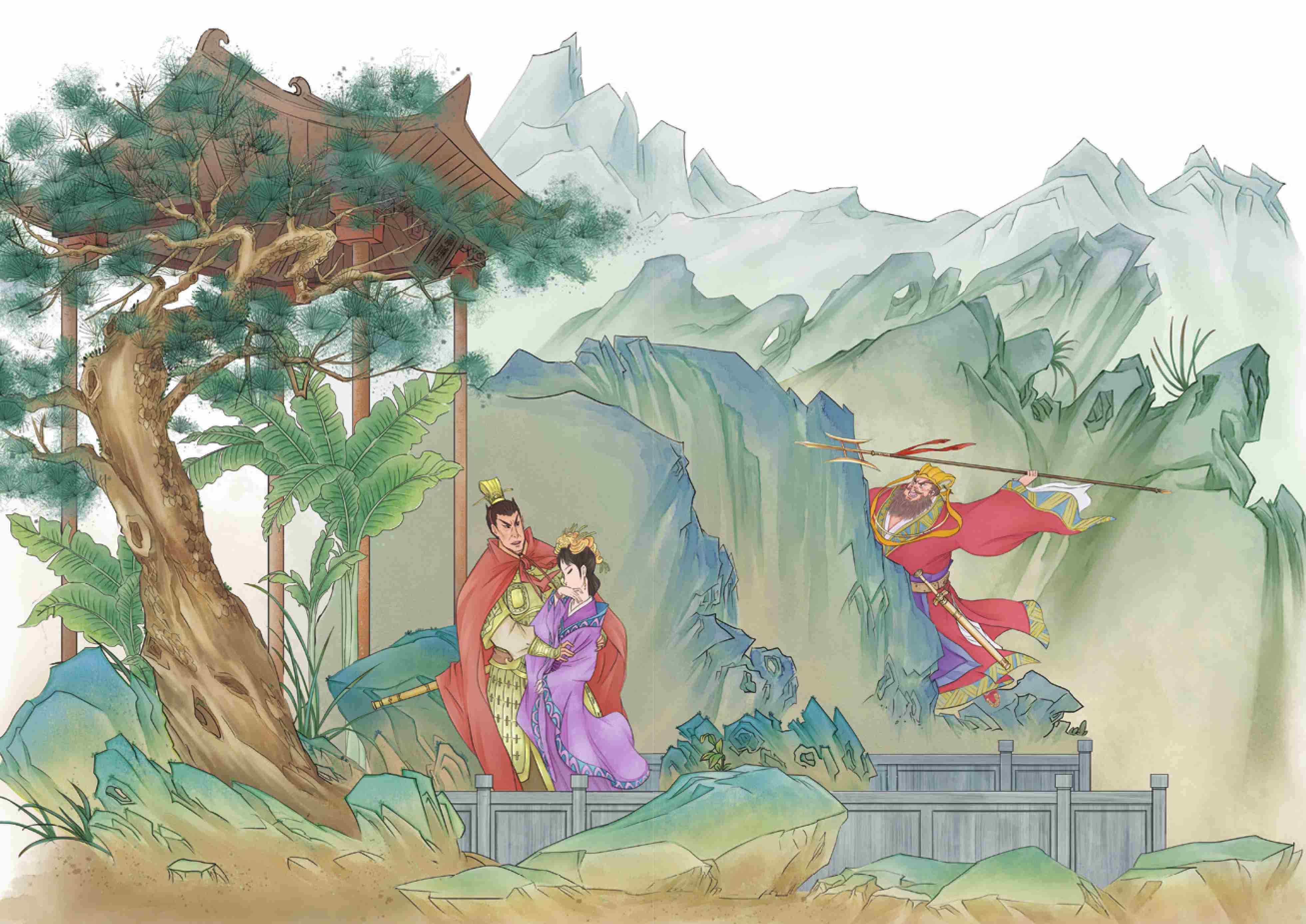 司徒王允想要除掉董卓,却束手无策,偶然见到府中的歌舞伎貂蝉貌若天仙,便心生一道连环计,对貂蝉细说计策。貂蝉答道:“大人对我恩重如山,此事我万死不辞。”次日,王允设计将吕布引到府中做客,有意让貂蝉敬酒。吕布立刻被貂蝉迷得目不转睛,王允趁势说道:“这是小女貂蝉,愿送与将军为妾。”吕布欢喜无限,再三拜谢而去。过了数日,王允又请董卓来府上赴宴,董卓见到貂蝉也是垂涎三尺,王允当即将貂蝉送至董卓府上。吕布得知此事,前来质问王允。王允道:“董太师接走小女,说要为将军主婚,我岂能拒绝?”吕布转怒为喜,回去等了又等,却不见董卓为他主婚,才知道董卓早已将貂蝉占为己有。吕布大怒,在凤仪亭找到貂蝉,貂蝉哭道:“妾原想服侍将军,却被董卓玷污,一直忍辱偷生,今日愿以死明志。”说罢作势要跳荷花池自尽。吕布慌忙拦住,心碎不已,怒道:“今生若不能娶你,非英雄也!”董卓忽然回来,正撞见吕布扯住貂蝉说话,勃然大怒,抄起吕布的方天画戟掷了过去,吕布慌忙躲开,掉头逃走。李儒拦住董卓劝道:“吕布之勇冠绝天下,何苦为一女子与他翻脸?若将貂蝉赐予吕布,吕布必然竭力效忠。”董卓道:“你说的也是。”董卓回到内室,对貂蝉道:“将你赐予吕布,如何?”貂蝉哭道:“妾已侍奉贵人,怎能再送家奴!这定是李儒的诡计,他与吕布交好,全然不顾太师的体面和贱妾的性命!”说罢拔出宝剑就要自刎。董卓连忙拦住貂蝉,从此打消了送走貂蝉的念头。