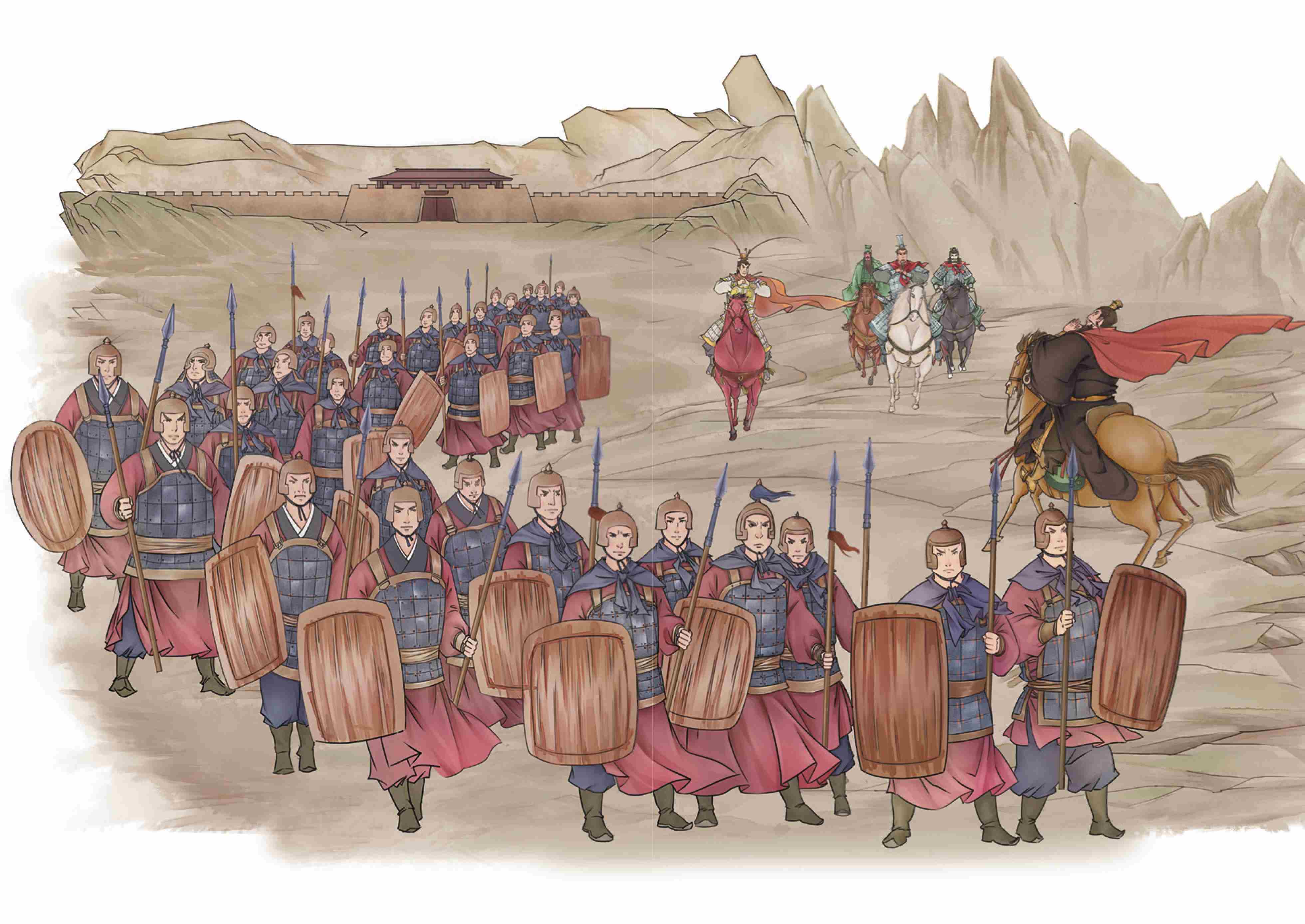 话说孙策想要离开袁术,回江东发展势力。为了向袁术借兵,孙策将父亲孙坚留下的玉玺拱手相送。袁术得了玉玺,野心倍增,在淮南称帝,加封文臣武将,做起了皇帝。袁术公然谋反,曹操亲率十七万大军,联合江东孙策、豫州刘备、徐州吕布攻打袁术。曹操的军队每天都要消耗大量粮食,眼下又是荒年,粮食接济不上,眼看着军粮将尽,军心浮动,曹操只好将罪过推到管理军粮的仓官王垕(读hòu)头上,说他贪污军粮,将他斩首示众。军士们的怨气这才缓解。曹操一鼓作气攻下寿春,收掠一空。正要继续进兵追杀袁术,忽然闻报,张绣在刘表的帮助下逐渐恢复实力。曹操后方不稳,便命孙策沿江陈兵,使刘表不敢妄动;又让刘备盯紧吕布,自己回师再征张绣。行军途中,正值麦熟之际,曹操下令“践踏麦田者斩”。百姓感恩戴德,军士遵令而行。偏偏有鸟飞过,曹操的马受惊,踏坏一片庄稼。曹操道:“我犯了军法,理应问罪,否则无法服众。”说着拔出宝剑就要自刎,众将连忙劝阻。曹操于是割发代首,以示三军,从此军纪更加严明。