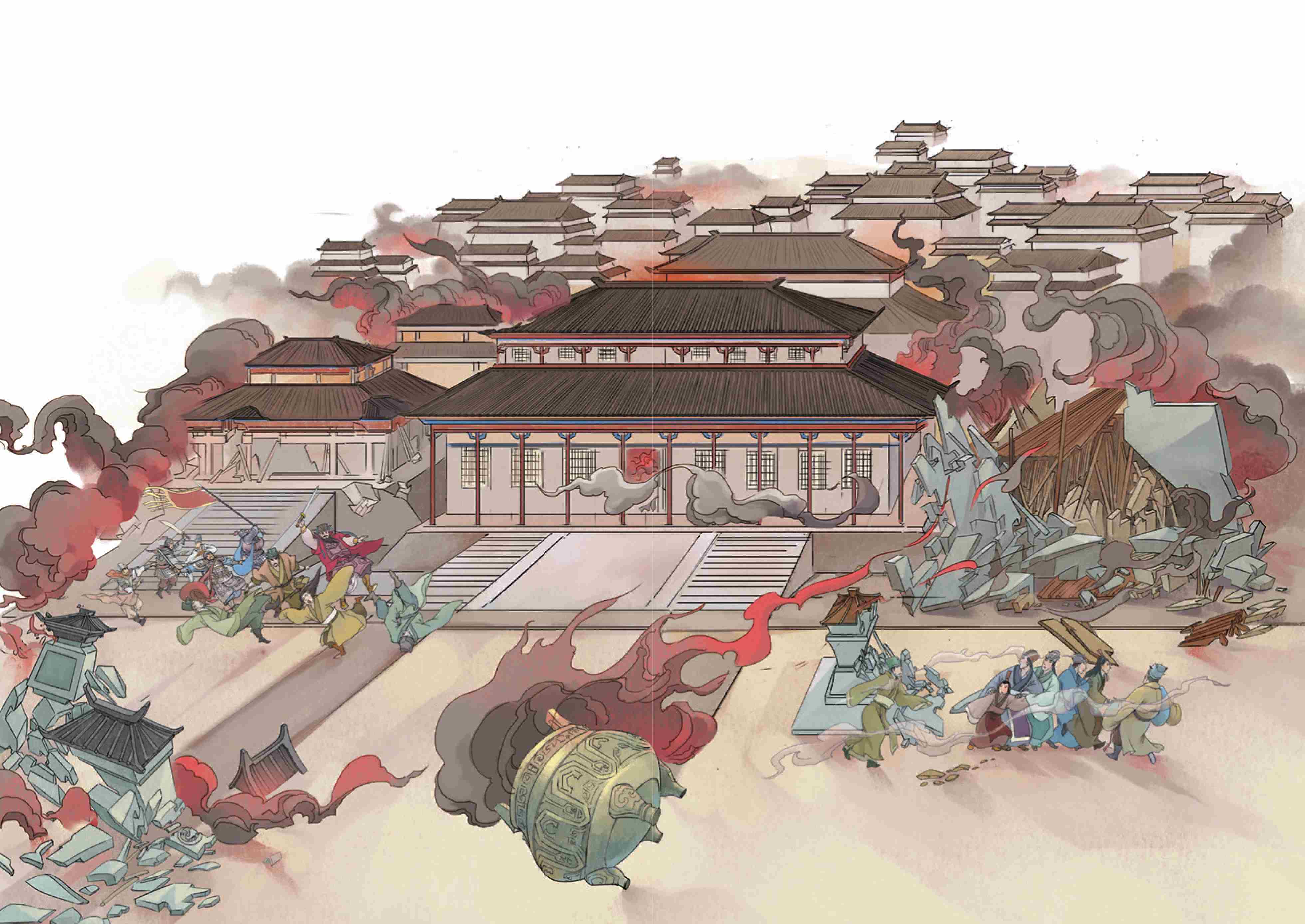 西凉刺史董卓得到诏书,大喜,率领凉州大军赶到洛阳城。十常侍得到消息,深感恐惧,对何太后哭诉:“我们得罪了大将军,请太后将大将军请到宫中来,容我们当面谢罪!”何太后便宣召何进入宫。尽管袁绍、曹操极力劝阻,何进仍然毫不疑心,昂然入宫,果然被十常侍所杀。袁绍、曹操大怒,率军冲进宫中,见了宦官就杀。宫中火焰冲天,一片混乱。张让等人挟持皇帝刘辩、陈留王刘协从后门逃出宫,一路逃到黄河边,走投无路。朝中百官四处追寻,好不容易找到了狼狈不堪的皇帝和陈留王。君臣尽皆痛哭。