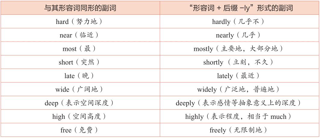 高考中某些副词有两种形式,一种形式与其形容词形式同形,另一种形式是形容词带后缀-ly,在使用中要特别留意两者在意思上的差异。高考中常见的类似副词主要有以下几组: