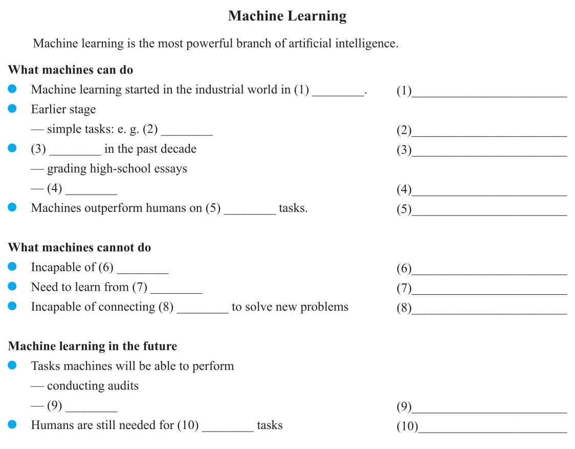 In this section you will hear a talk.You will hear the talk ONCE ONLY.While listening, you may look at the task on ANSWER SHEET ONE and write NO MORE THAN THREE WORDS for each gap.Make sure what you fill in is both grammatically and semantically acceptable.You may use the blank sheet for note-taking.