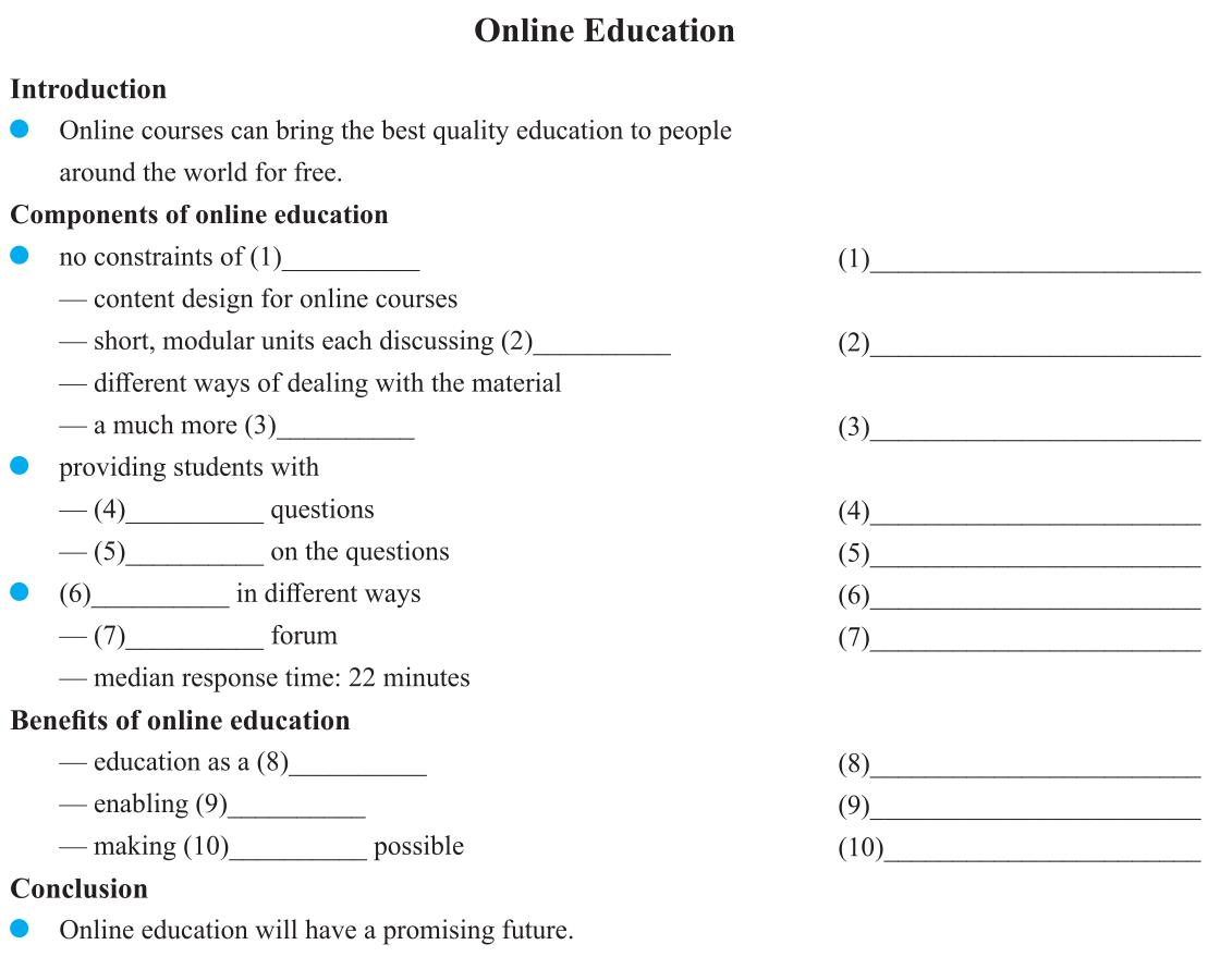 In this section you will hear a talk.You will hear the talk ONCE ONLY.While listening, you may look at the task on ANSWER SHEET ONE and write NO MORE THAN THREE WORDS for each gap.Make sure what you fill in is both grammatically and semantically acceptable.You may use the blank sheet for note-taking.