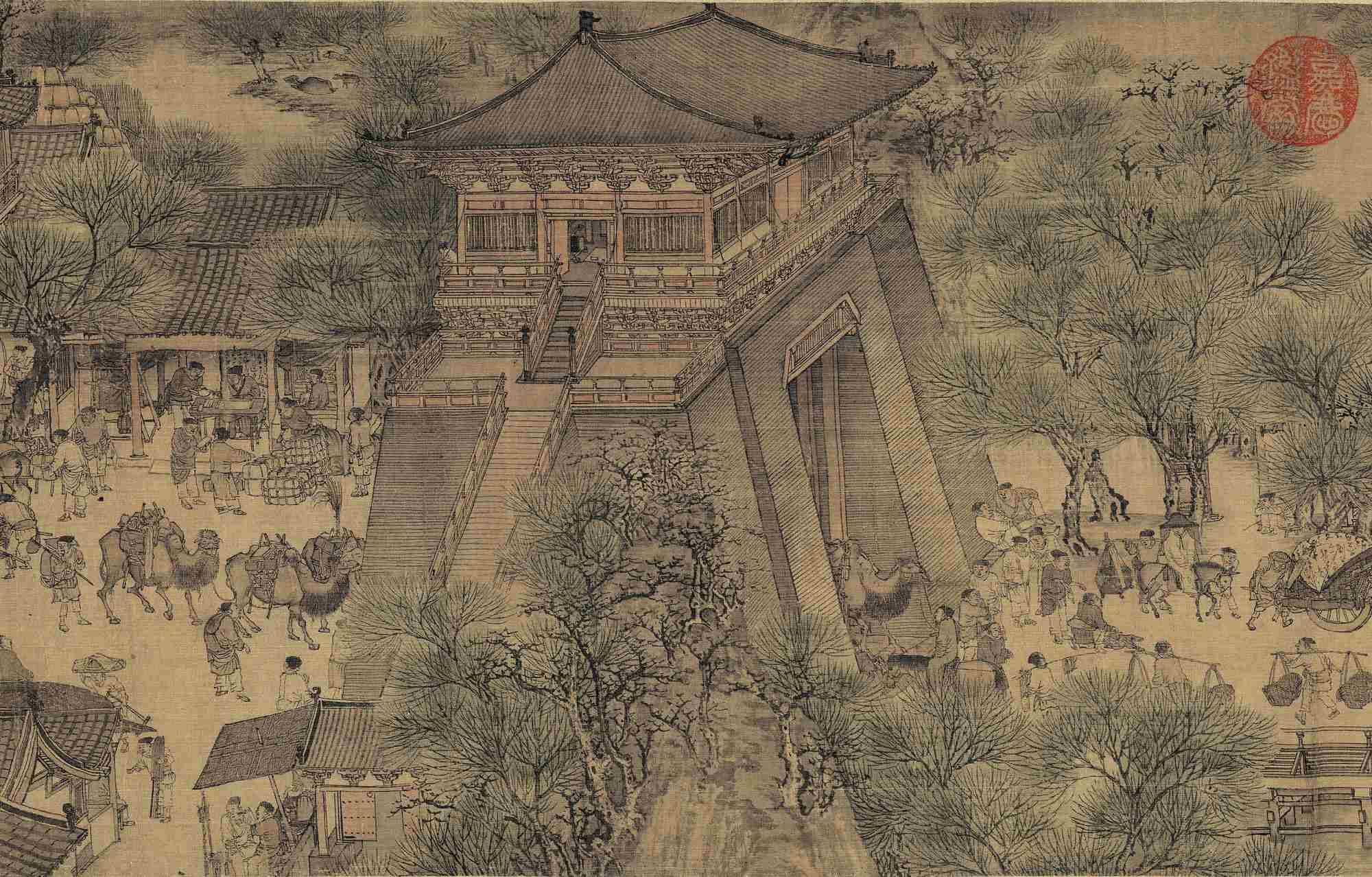 这样看就很清楚了。在北宋,“士农工商”是不可逾越的阶级序列,甚至在画中都不可随意调换,士大夫的地位高于僧侣,高于岸边这一家人,老百姓。皇权就是主峰,所有人都要在皇权的庇佑下生活。