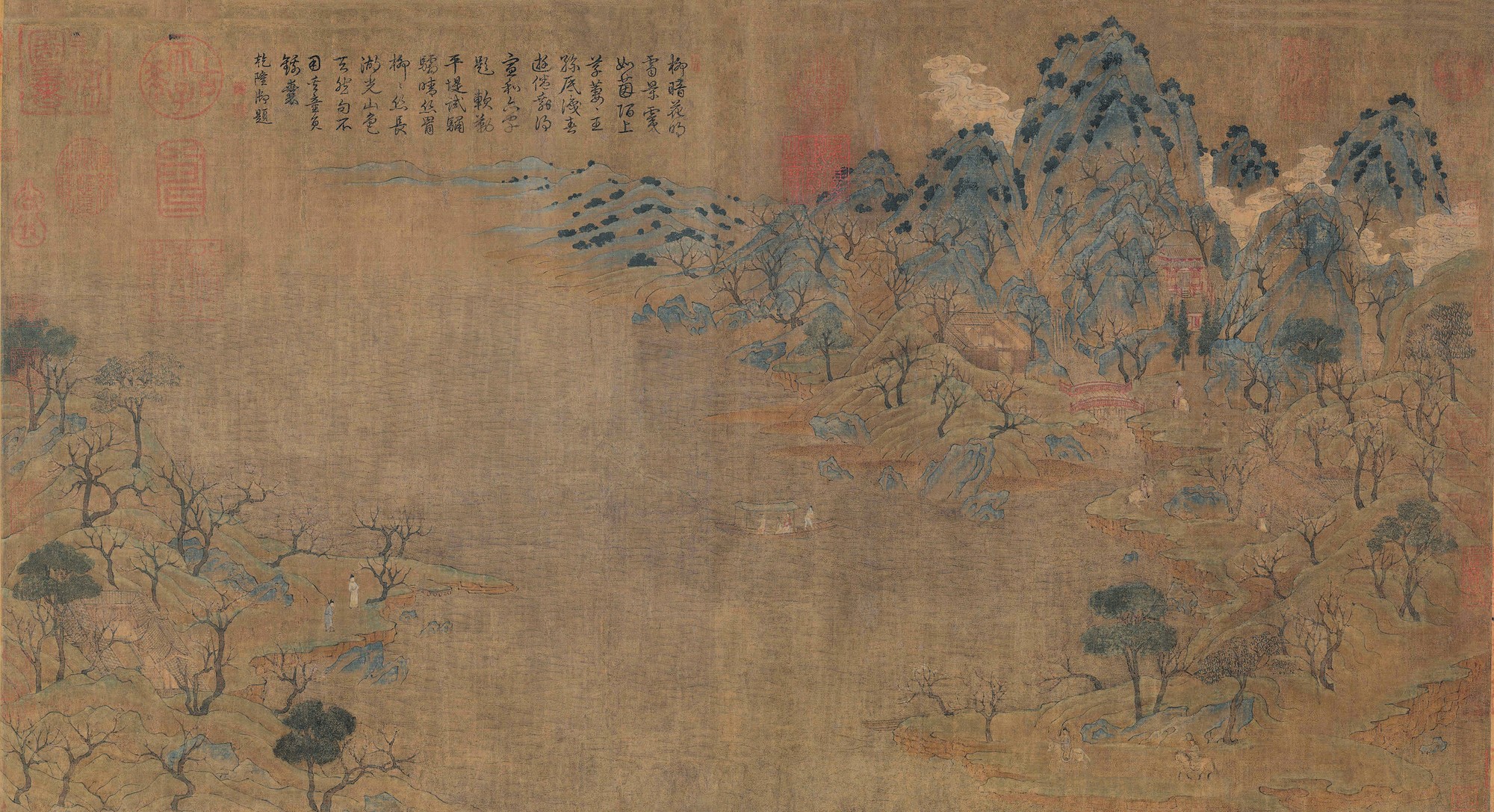 关于这幅画“流传有序”的经历,比它平淡无奇的诞生刺激得多。宋徽宗亡国之后,《游春图》流落到了南宋,后被大奸臣贾似道据为己有,之后又经元朝公主,到了明代则属宫藏,而后又为权臣严嵩所藏,至此流入民间,清朝时归大收藏家梁清标所有,他最终还是上缴了“国家”,即清内府。