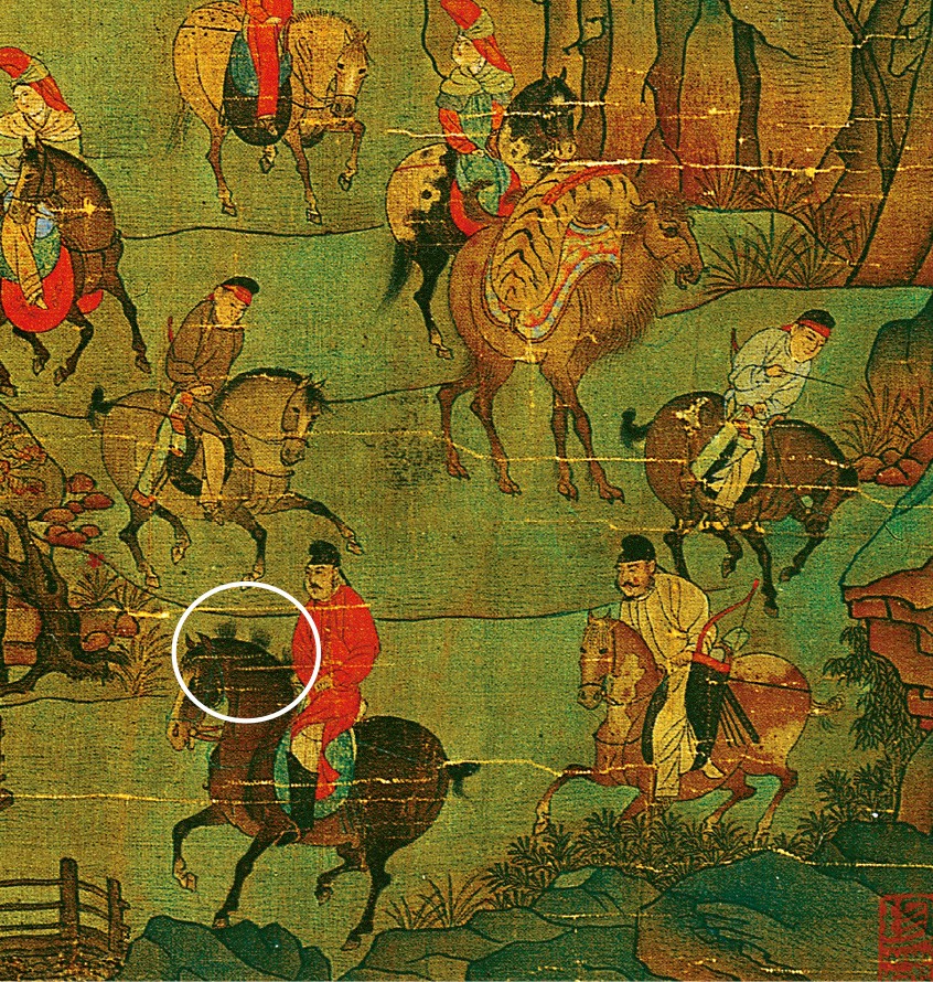 唐玄宗后面三位男子,其中两位应该就是大太监高力士和大将军陈玄礼,还有一位也许就是李昭道本人。