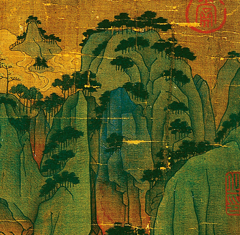 李思训、李昭道父子二人的“金碧山水”对后世绘画的发展有着深远的影响,帝王们和贵族画家们深深地爱着这种看似“浮夸”的山水画法,这种笔法最能表达“江山一片大好”的繁荣景象,北宋皇家画院的王希孟所绘《千里江山图》将这种传统青绿山水送上了顶峰。后来,一到外族入侵内忧外患之时,画家们就开始复兴“金碧山水”的画风,以寄托心中无处安放的江山。