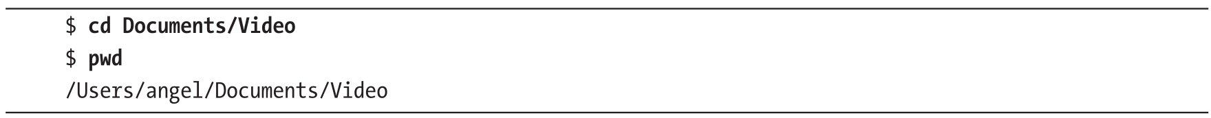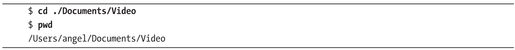 可以使用一点(.)来表示当前目录。下面是另一种切换到Documents/Video目录的方式: