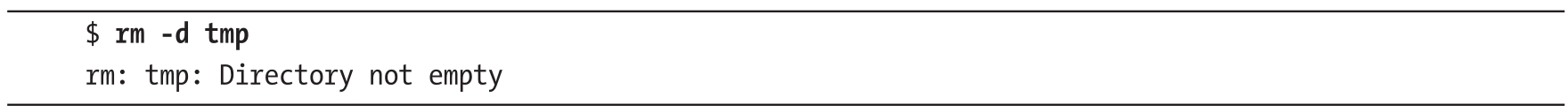 如你所见,shell返回了一个错误信息,因为tmp不是空目录(它有一个子目录)。如果想删除一个目录及其所有子目录,可以使用选项-r: