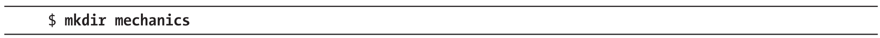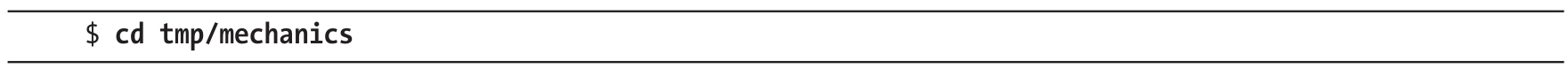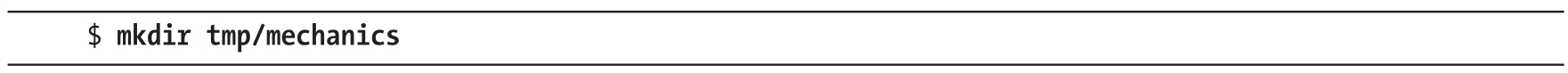 我们在工作目录中创建了一个名为tmp的新目录,它包含一个名为mechanics的新目录。我们也可以用两步来完成同样的事情,首先创建tmp目录: