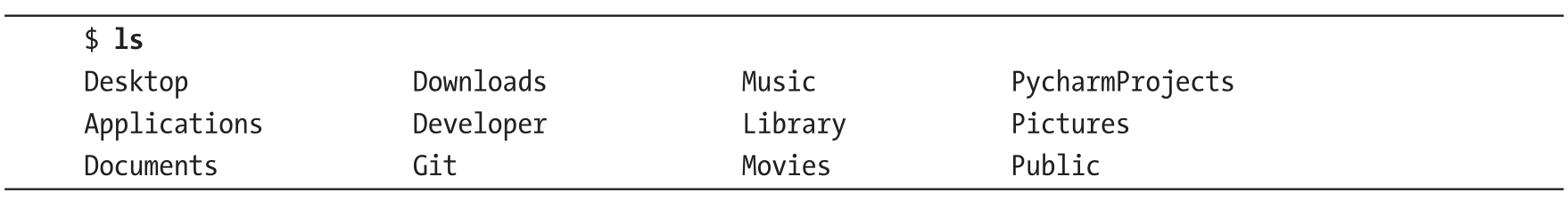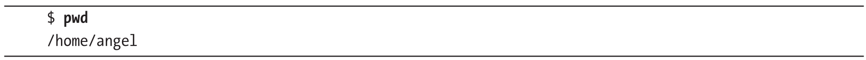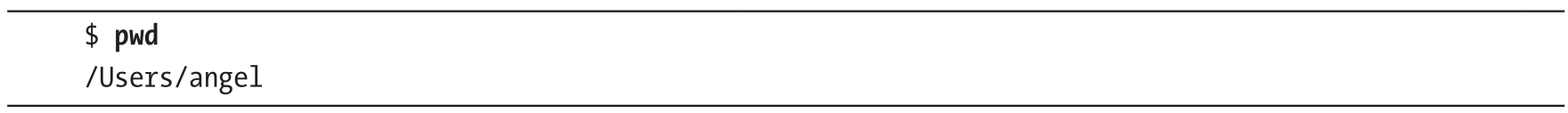 让我们尝试第一个命令:pwd(print working directory,输出工作目录的缩写)。在shell中输入pwd,然后按回车键或返回键。此命令会显示当前目录的路径,即shell所在的目录路径: